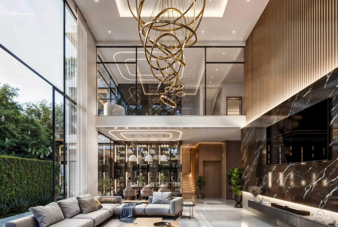 You enjoy 450 square meters of thoughtfully planned space. The architecture is contemporary and clean. Natural light fills every room. Large windows open up to a landscaped private garden and a sparkling swimming pool. You step outside and feel like you are in your own resort.